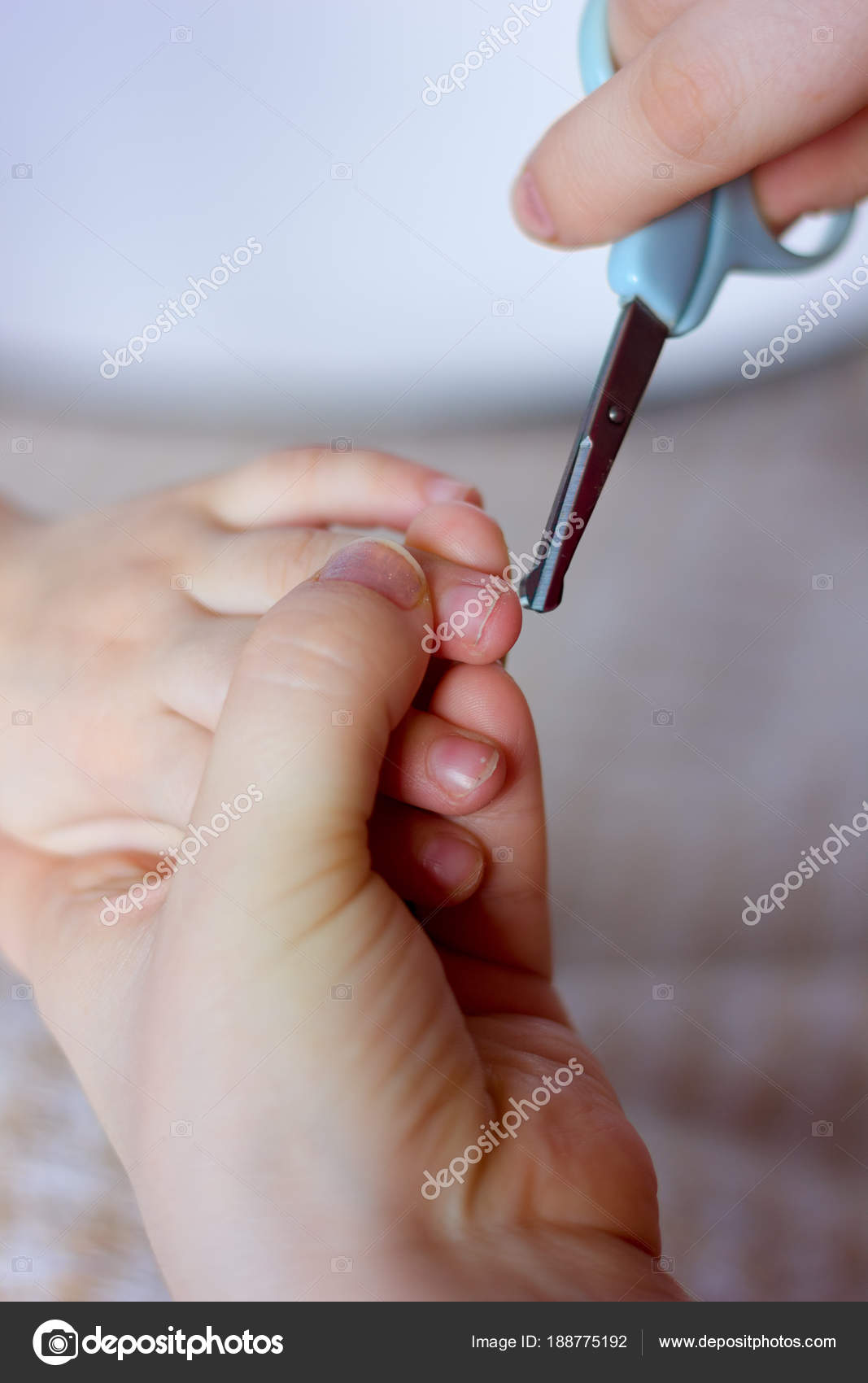 Mother Cut Nails Finger Baby Girl Stock Photo